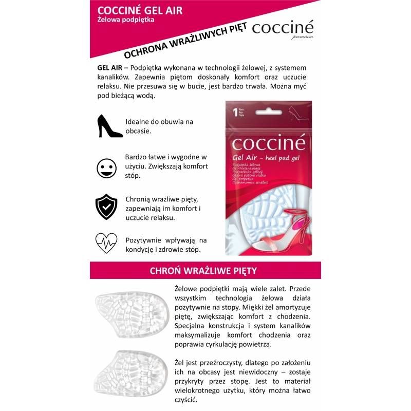 Transparent gel heel pads from COCCINE. These pads enhance comfort through a labyrinth of channels that promote air circulation.