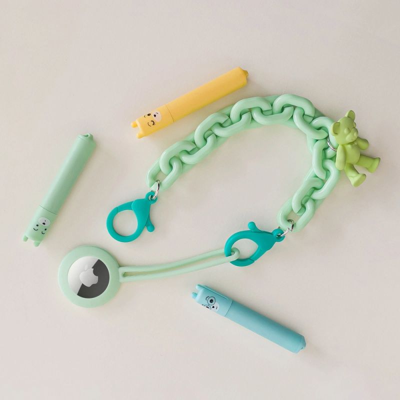 An original, fun accessory that will change your smartphone, purse, backpack and much more. A colorful chain with a teddy bear figurine, all made of lightweight plastic.