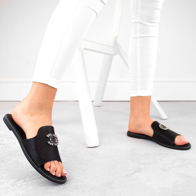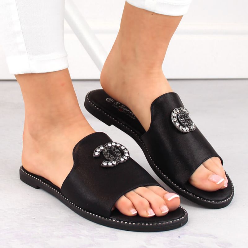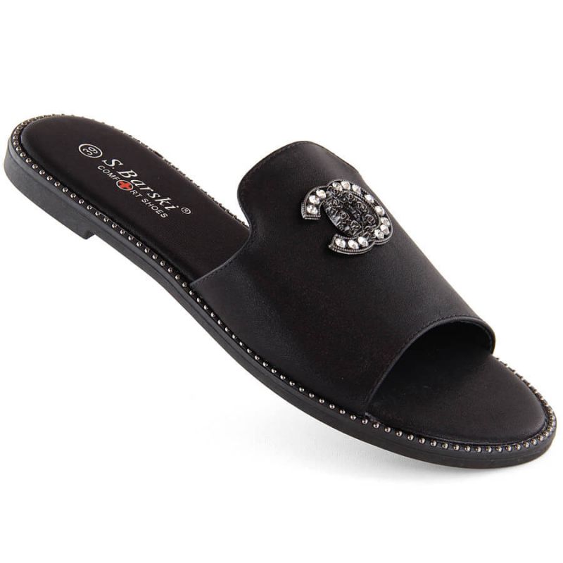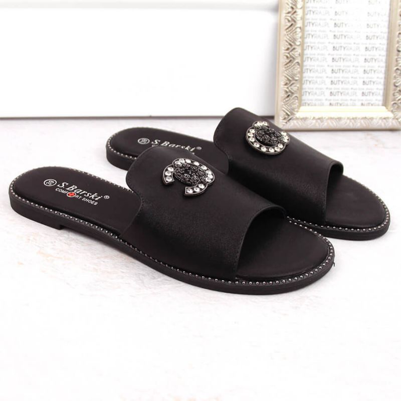 Comfortable slippers with zircons S.Barski W OLI258A black