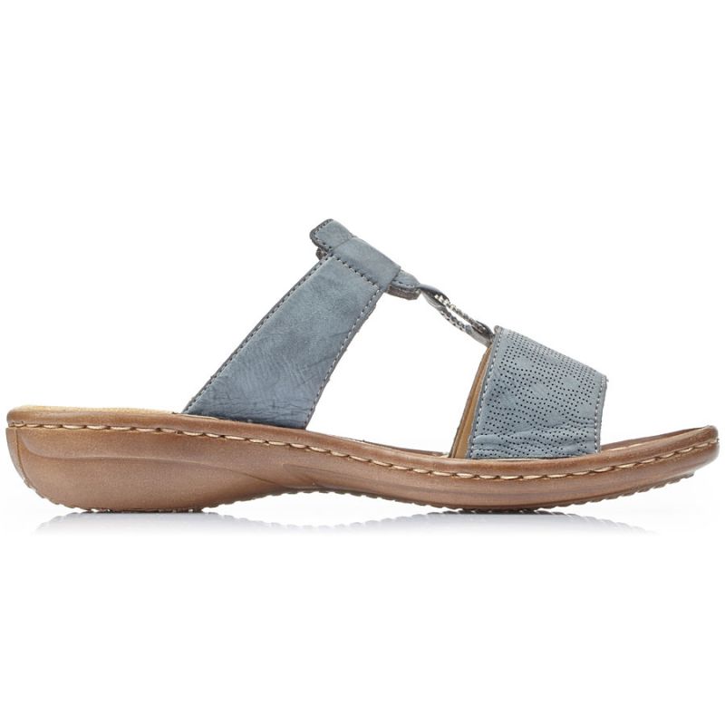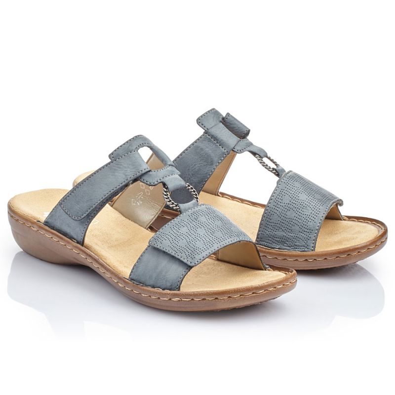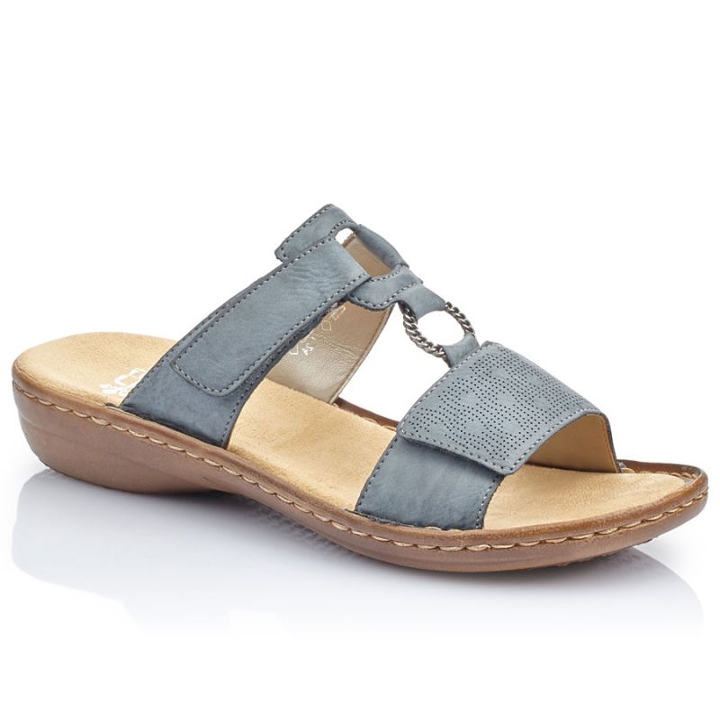 Comfortable women's flip-flops with Velcro, blue, Rieker 60885-12