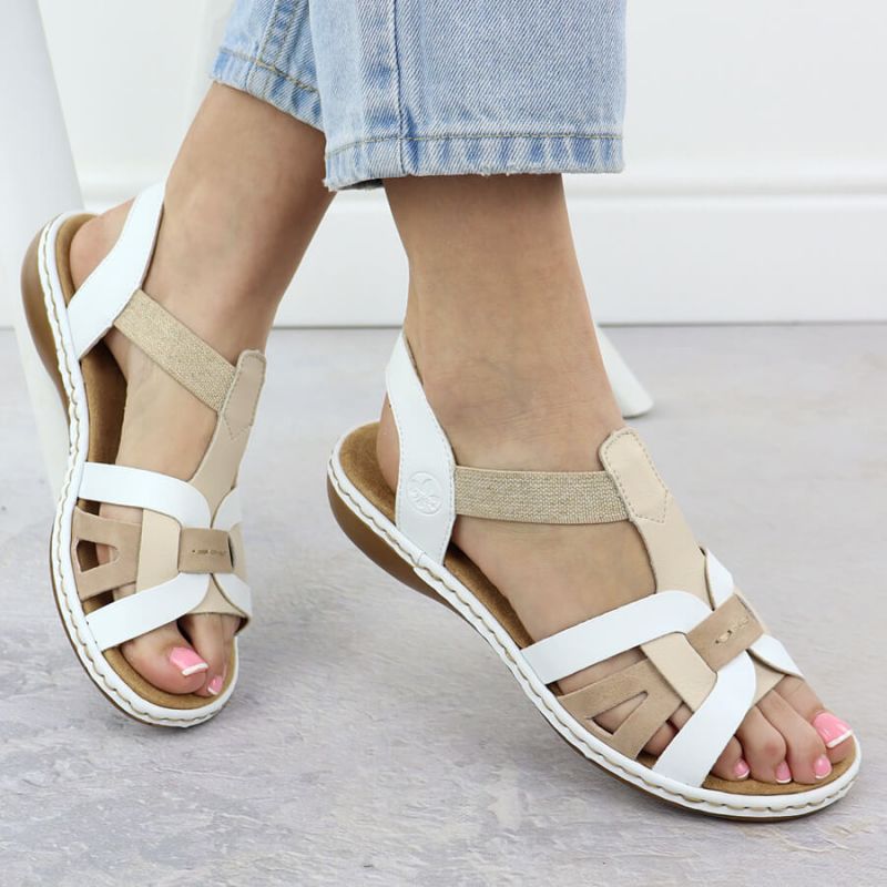 Comfortable women's slip-on sandals with elastic straps, white Rieker 65918-81