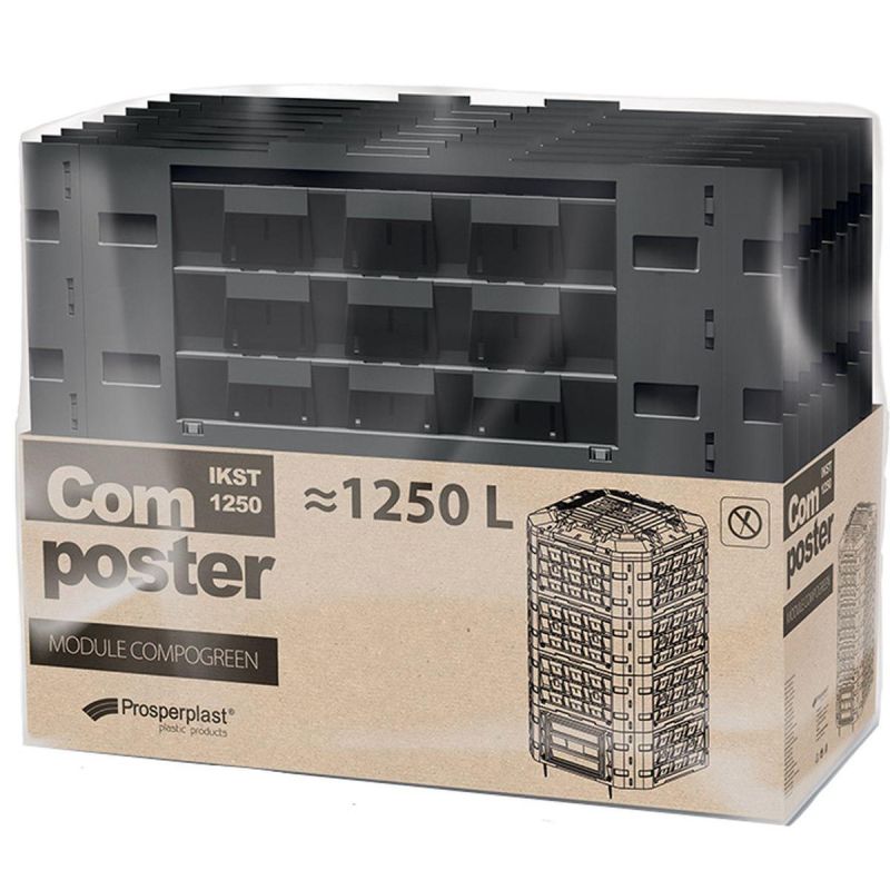 Want to compost easily, cleanly, and effortlessly? The COMPOGREEN VARIO 1250L GARDEN COMPOST BIN is an innovative solution that allows you to easily and ecologically transform organic waste into natural fertilizer for your garden. Its modular design makes assembly a snap, requiring no tools!