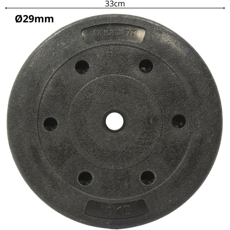 With the ENERO FIT 10 kg 29 mm concrete weight plate, you can build muscle and improve your endurance without leaving home. The sturdy plate with a universal 29 mm hole fits most recreational barbells and dumbbells, ensuring versatile use.
