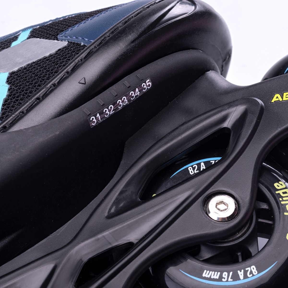 The MERON YB junior inline skates by Coolslide feature a comfortable inner boot integrated into the partial shaft. A Velcro strap at the front of the shaft allows for a better fit. The size adjustment system allows the skates to grow with the child. Additionally, this model features a closed front to protect the toes. A convenient pull tab makes it easy to put the skates on. A single buckle at the ankle provides additional ankle support.