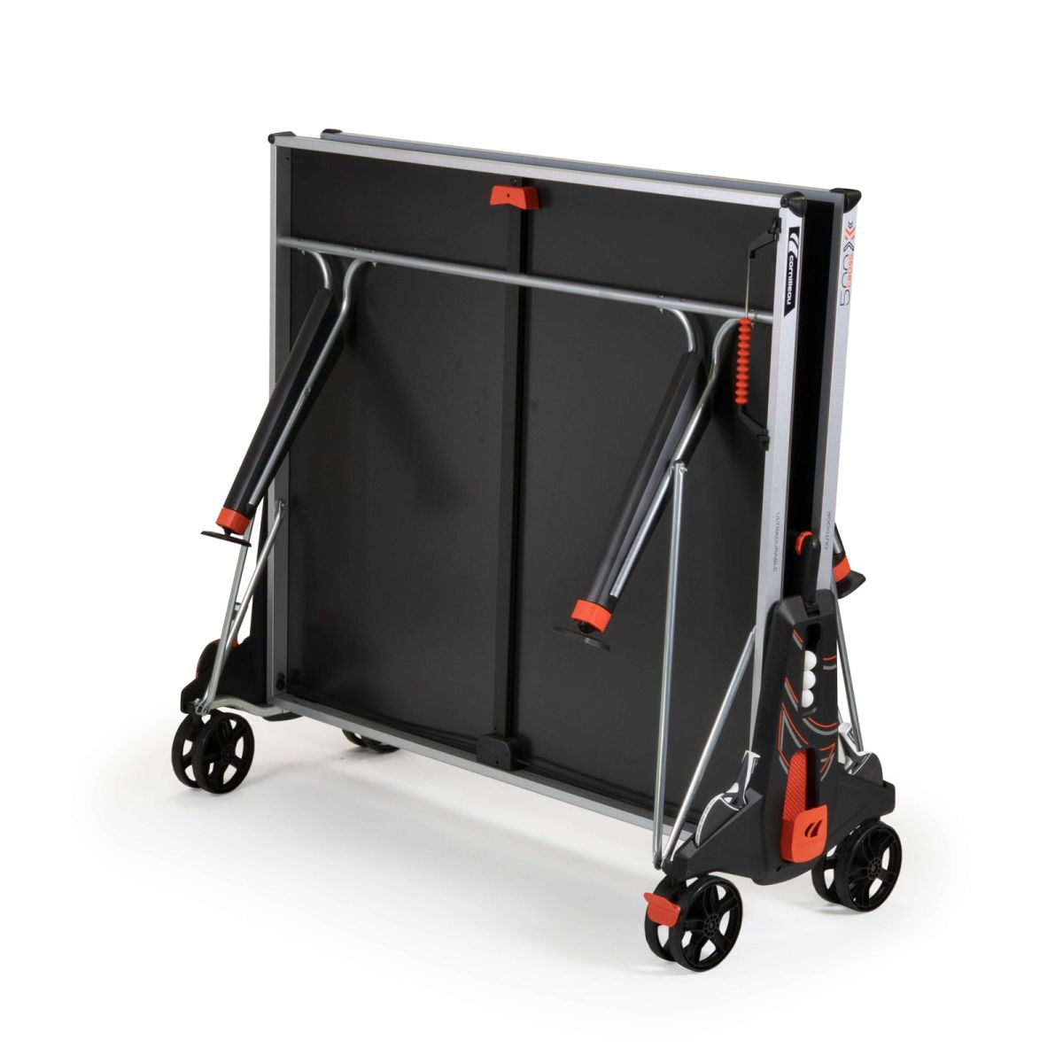 COMPACT TECHNOLOGY®: A patented system ensures maximum safety and easy folding. The folded table takes up minimal space and is stable during storage and transport. This technology also allows for solo play by folding just one of the tabletops.