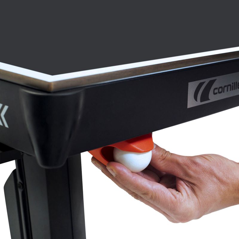 - The black table with orange trim combines class, elegance, and modernity. The attention to detail and impressive, unique design of the 700X table will bring a new dimension to table tennis and add a touch of extravagance to any interior. Cornilleau designers paid attention to the smallest details, adding several important additions to the new table collection, based on customer feedback and their own 50 years of experience. A counter, drink holders, corner protection, and a fully retractable net when folded are the details that set this table apart from others. The experts from Cornilleau in France guarantee at least 10 years of enjoyment.
