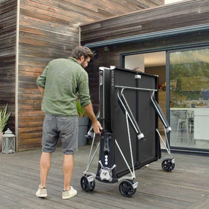 - It looks great, and its contoured legs, large wheels with brakes, practical pockets for storing rackets and balls, ergonomic system for unfolding and folding the net, and two-dimensional net adjustment are just some of the advantages of the unique BLACK CODE table.