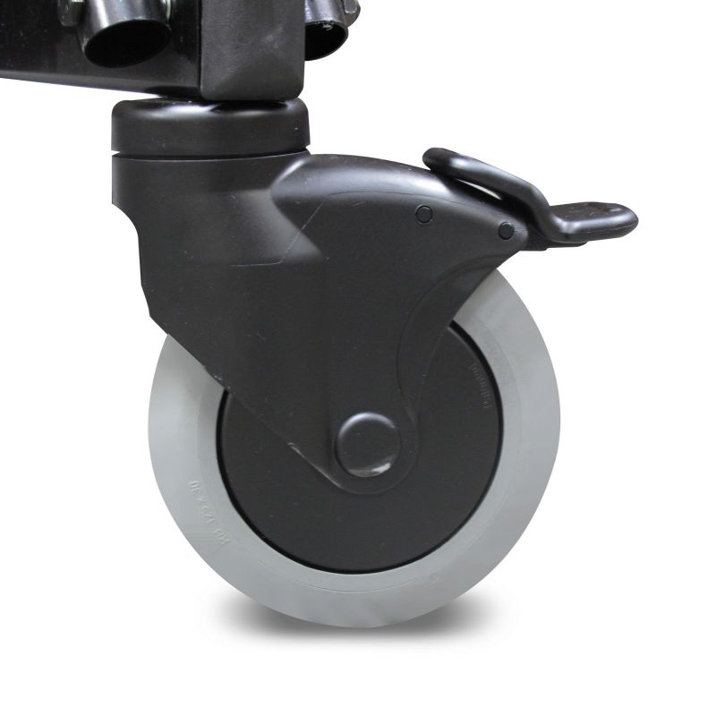 Wheels: rubber wheels, dimensions 35 mm x 125 mm, 2 brakes