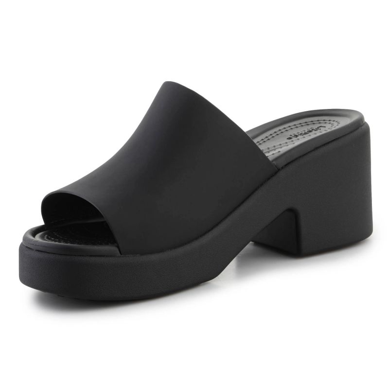 - Crocs Brooklyn Slide Heel 209408-060 are stylish black high-heeled slides, perfect for various occasions.