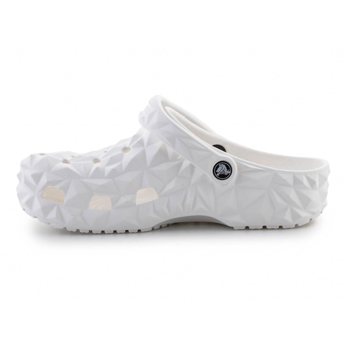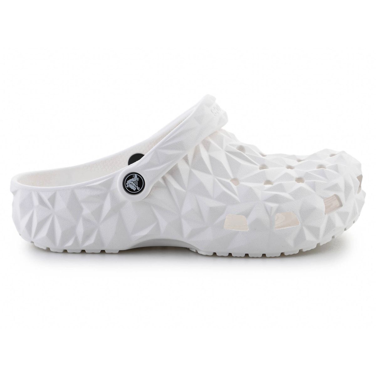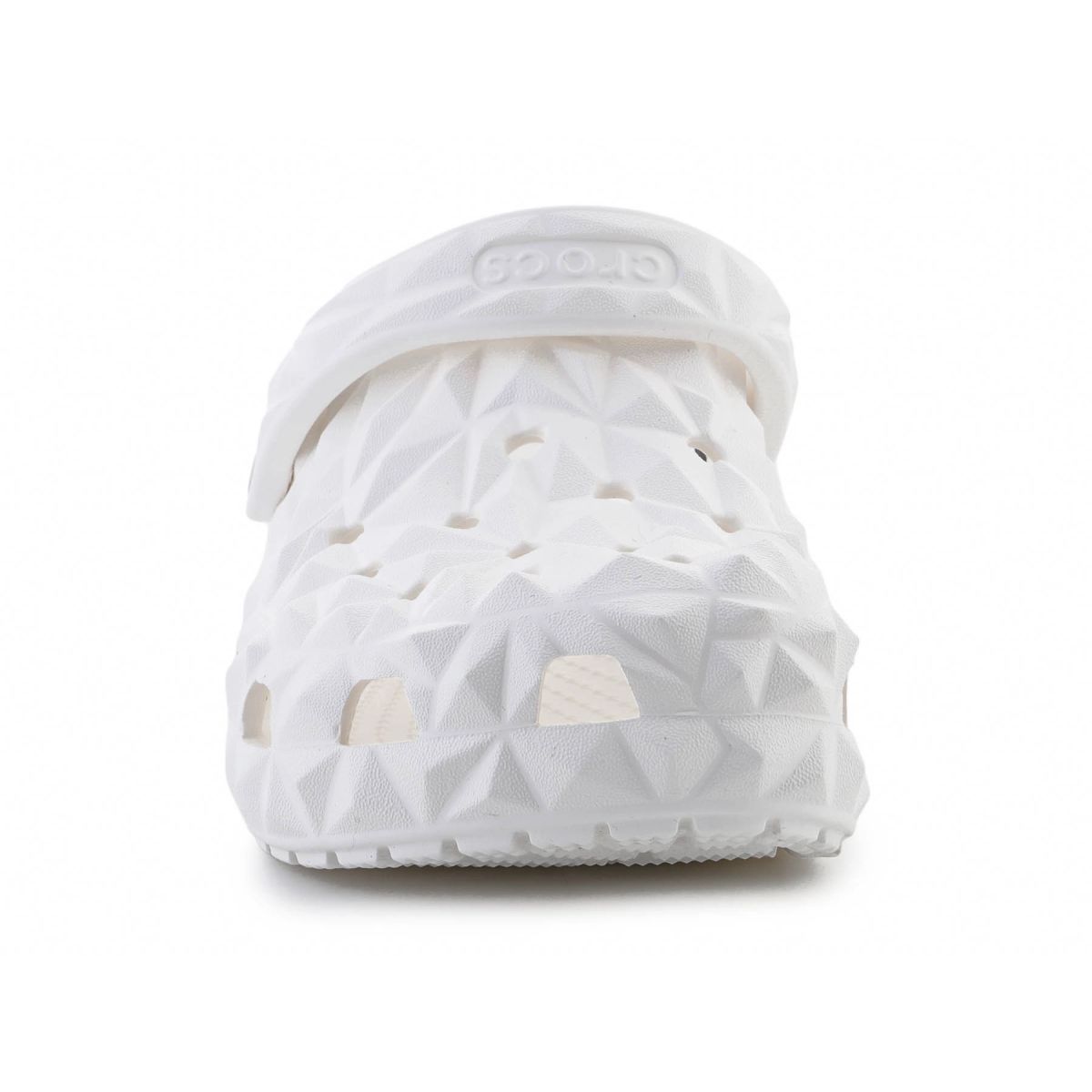 - The Crocs Classic Geometric Clog 209563-100 in white is a modern version of the iconic Crocs clogs, distinguished by a geometric structure across the entire surface.