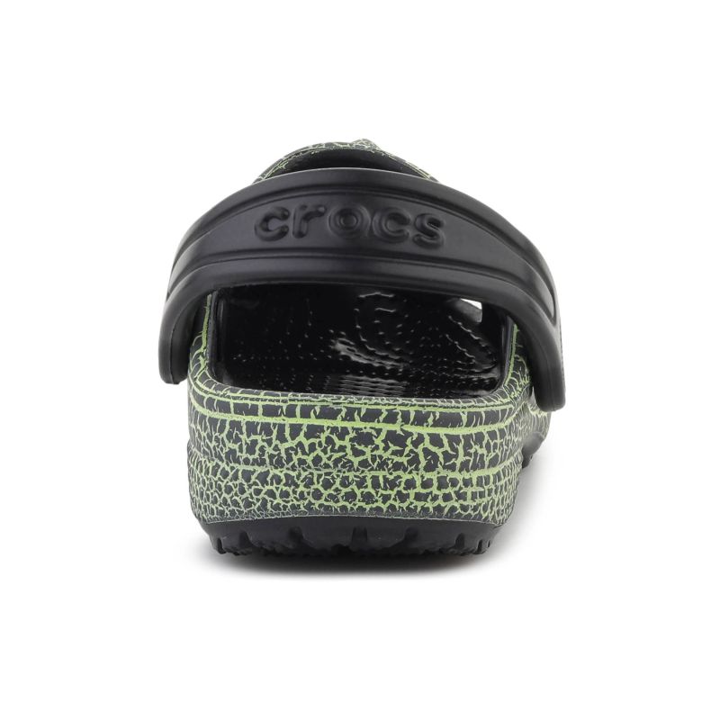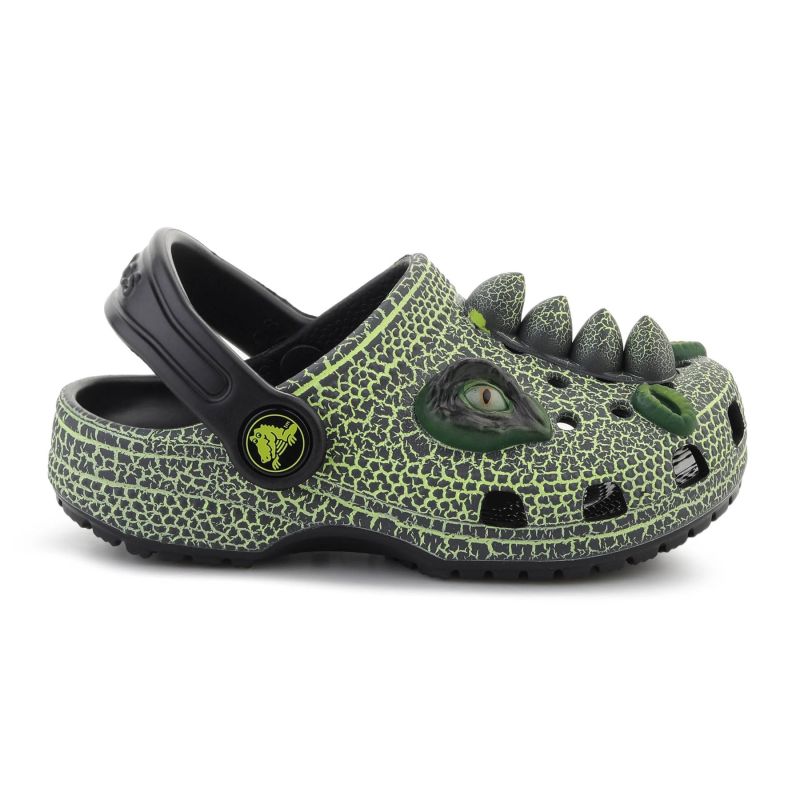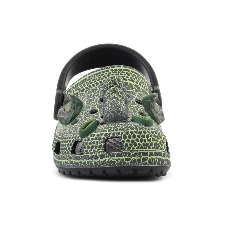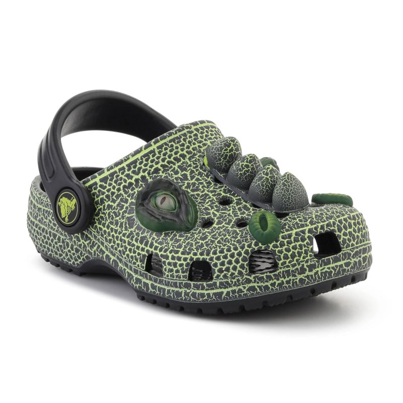 The Crocs Classic I Am Scary Dino Clog T Kids Black 211372-001 are kids' slides designed with little dinosaur fans in mind. This model attracts attention with its striking look inspired by the prehistoric reptile—the upper is textured to resemble dinosaur scales, and the look is complemented by fixed details like eyes, nostrils, and spikes. This unique style gives these shoes a distinctive look and helps kids express their interests during everyday play. These comfortable kids' slides are perfect for everyday wear, at home, in the garden, or on the go. They feature a movable heel strap for a secure fit and help keep the foot in place. Comfort is ensured by Iconic Crocs Comfort™ technology, a lightweight, flexible construction that provides 360-degree comfort. The Crocs Classic I Am Scary Dino Clog is a lightweight, fun, and bold design that combines a distinctive look with the comfort of our Classic models.