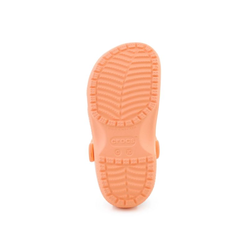 The Crocs Classic Kids Clog T Electric Sunstone 206990-86A are iconic kids' slides in a vibrant, vibrant orange. This Classic model features a lightweight construction, a simple slip-on design, and a distinctive upper with ventilation holes that enhance breathability and help wick away water. This makes it perfect for everyday wear, at home, on walks, in the garden, on vacation, and for water play. The shoes are made of lightweight, durable, and easy-care Croslite™ material, which provides cushioning and comfort. Iconic Crocs Comfort™ technology provides lightweight, flexible, and 360-degree comfort. A pivoting heel strap enhances the fit and, when folded forward, makes it easy to put on and take off quickly. The model is waterproof, dries quickly, and can be personalized with Jibbitz™ pins. These are comfortable children's slip-on flip-flops that combine the recognizable Crocs design with functionality appreciated by children and parents.