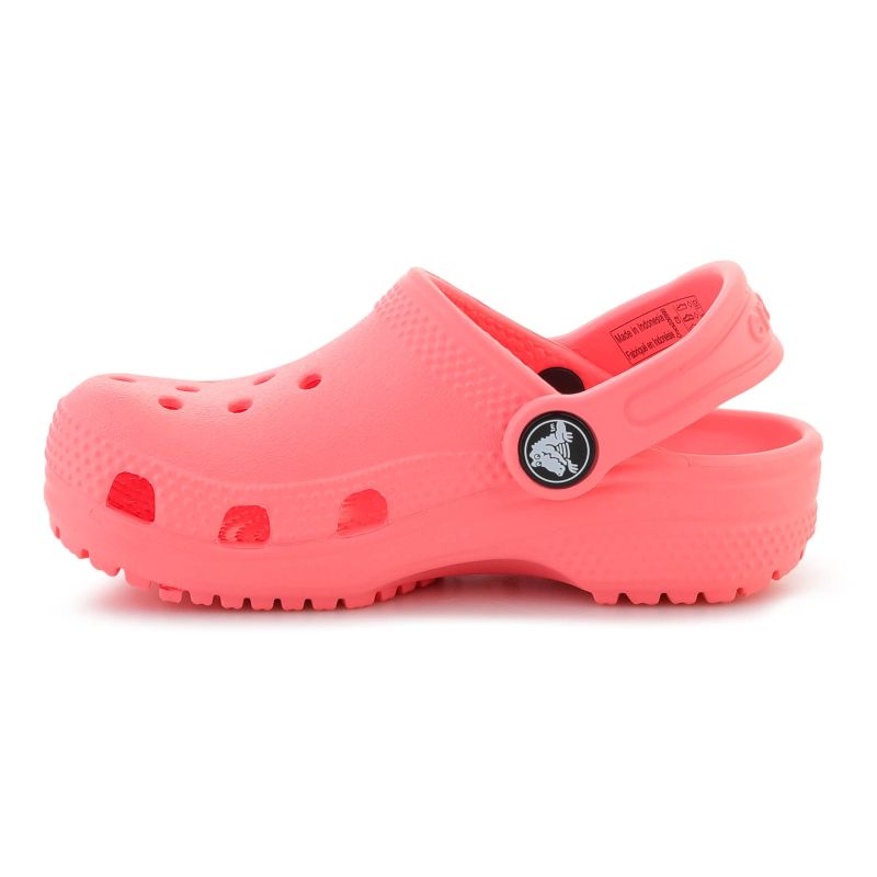 The Crocs Classic Kids Clog T Guava 206990-6UI are children's clogs designed for everyday comfort and freedom of movement. This model, in an energetic Guava color, features a lightweight, seamless construction and the distinctive, recognizable Crocs design. They're a great choice for toddlers for everyday wear, preschool, vacations, the garden, the beach, or just playing at home.