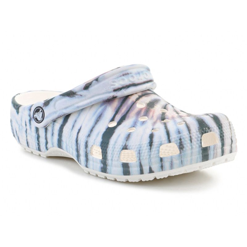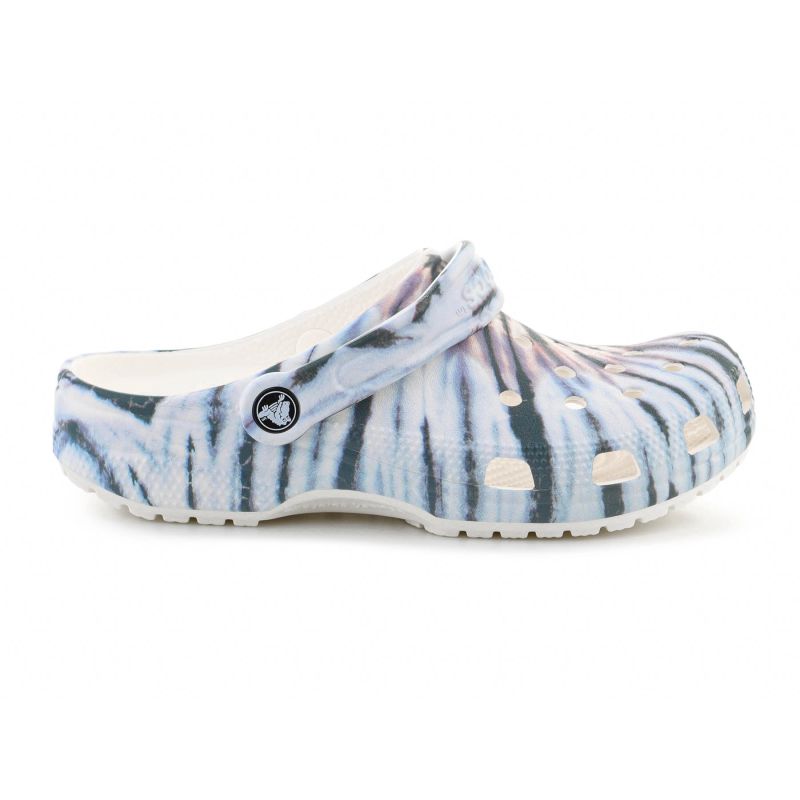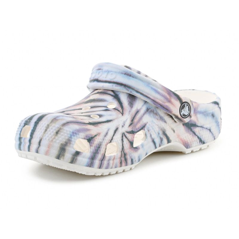 The Crocs Classic Tie Dye Clog Chalk/Multi 211937-0PZ is a twist on the iconic Classic Clog that launched a global comfort revolution. Featuring a multicolor tie-dye effect on a light Chalk base, this style is eye-catching and adds a casual, unique touch to any outfit. These versatile Crocs clogs are perfect for everyday wear, at home, on vacation, by the water, or anywhere lightweight comfort is important. The construction is designed for breathability, with vents that enhance breathability and facilitate water and debris drainage. Lightweight, waterproof, easy to clean, and quick-drying, they're perfect for everyday wear in a variety of conditions. A pivoting heel strap enhances the fit and stability, while customization with Jibbitz™ pins allows for personalized style. Comfort is ensured by signature Iconic Crocs Comfort™ technology, described by the brand as lightweight, flexible, and providing 360-degree comfort. This is an excellent choice for people looking for the original Crocs Classic Tie Dye combining recognizable design, functionality and comfort.