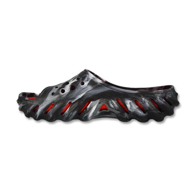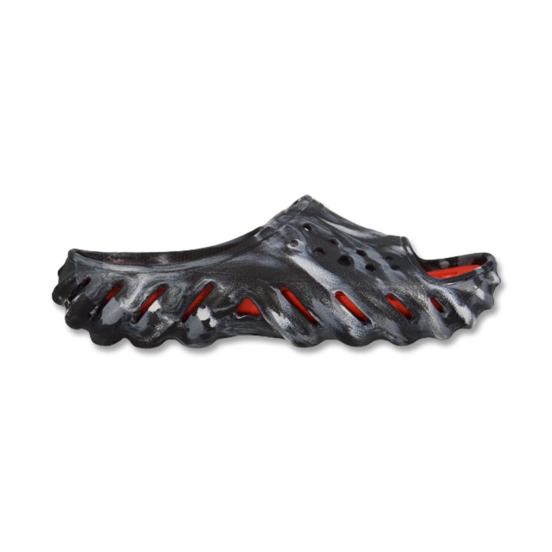 Crocs Echo Marbled Slide Pool Clogs in Black/Flame - 208467-0X9