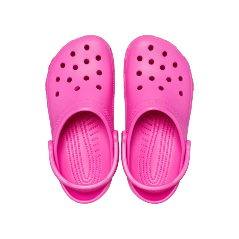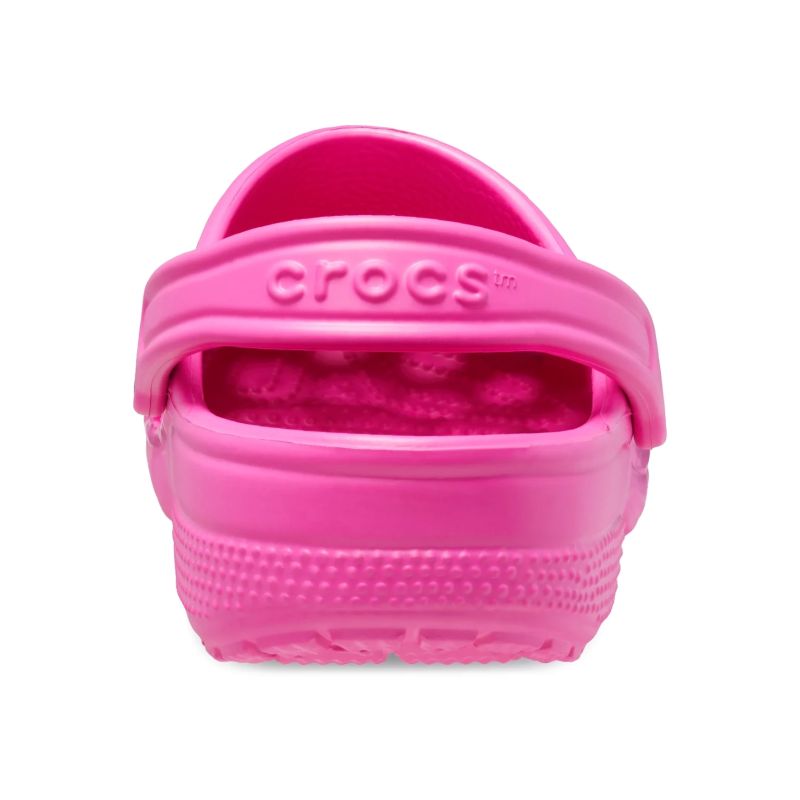 The Crocs Kids Classic Clog 10006-14 Fuchsia is the iconic Crocs Classic kids' flip-flop , designed with maximum comfort in mind for the youngest wearers. Made with Croslite™ foam , it provides lightweight cushioning and support, molding to the shape of your foot as you wear it. The material is waterproof, easy to clean, and odor-resistant , making it a practical choice for the beach, pool, garden, or everyday strolls.