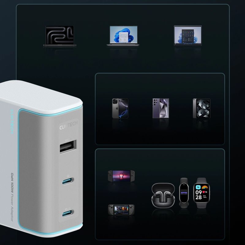 Cuktech AD1003EU 100W GaN Wall Charger 2x USB-C + USB-A - White