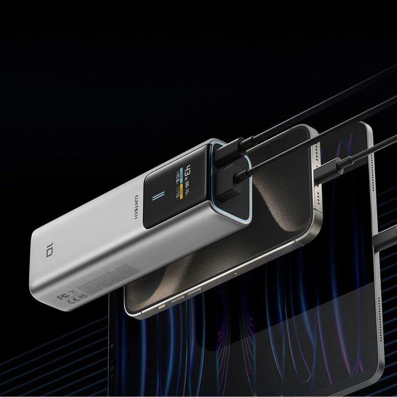 The Cuktech CKPB100PGLBL is a modern power bank with a capacity of 10,000 mAh and output of up to 150W, providing ultra-fast charging for laptops, smartphones, and tablets. With a USB-C output of up to 120W and a USB-A output of up to 33W, you can charge even the most demanding devices. The color TFT screen displays key information about voltage, current, charge level, and remaining runtime in real time. The power bank supports fast reverse charging up to 90W, allowing you to replenish 55% of its capacity in just 15 minutes. Despite its enormous capabilities, it remains compact and lightweight, and its VO265 fire-resistant housing and nine layers of protection ensure complete safety.