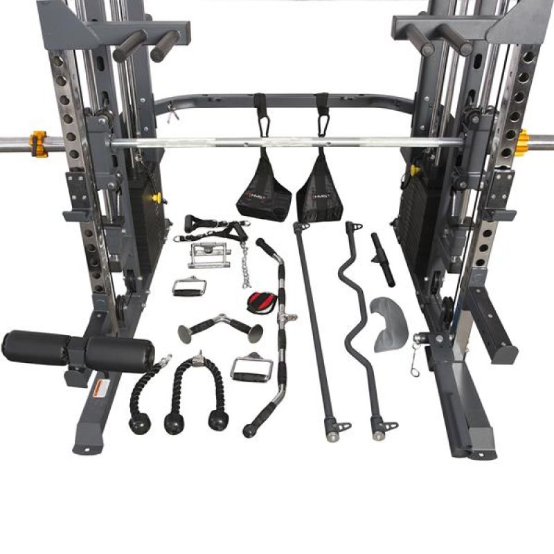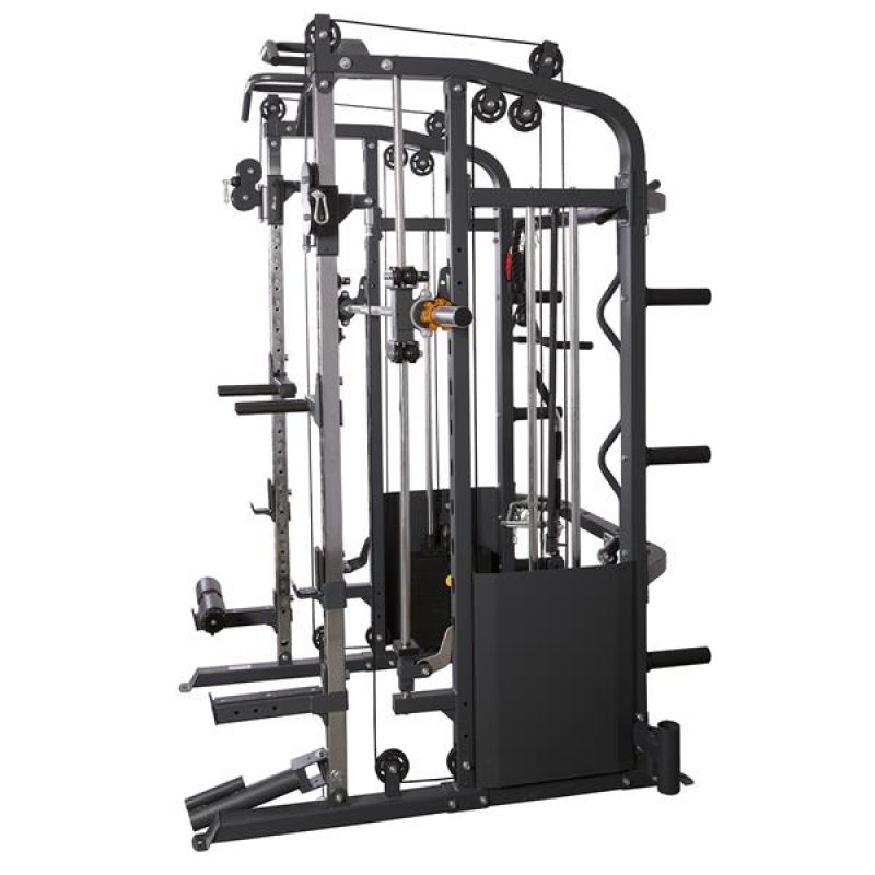 Its origins date back to the 1950s. The Smith Machine's design introduces entirely new possibilities to strength training. This is primarily due to the integration of the sliding mechanism with the bar and the belay system. Modern Smith Machine models are typically equipped with additional components. This means that by purchasing a Smith Machine, you can receive a device for a comprehensive, full-body workout.