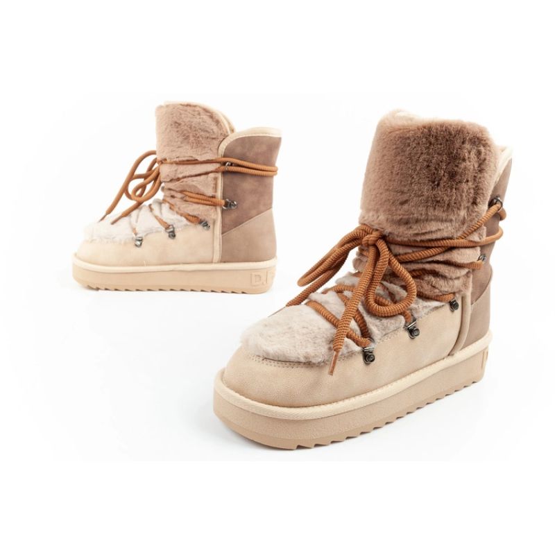 D.Franklin women's winter snow boots, fashionable fur lining, brown beige high