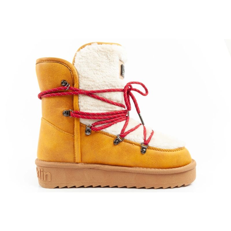 D.Franklin women's winter snow boots, fashionable fur lining, mustard color