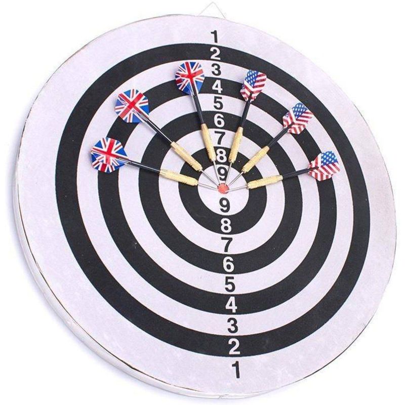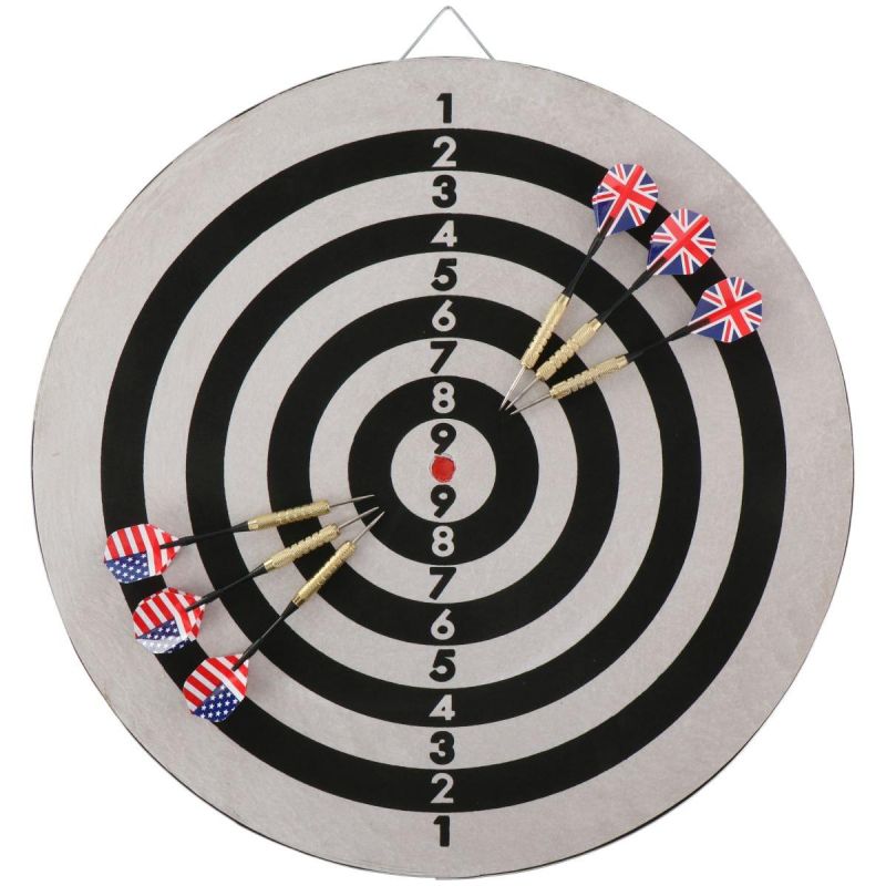 - Darts included: yes, 6 pcs. (3 with the US flag motif, 3 with the UK flag motif)