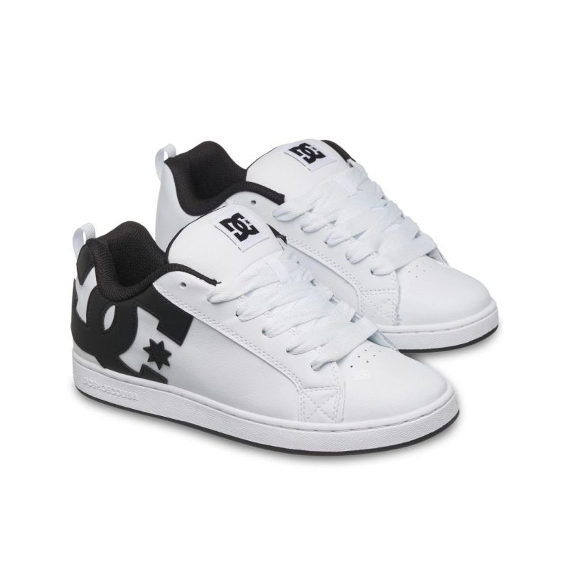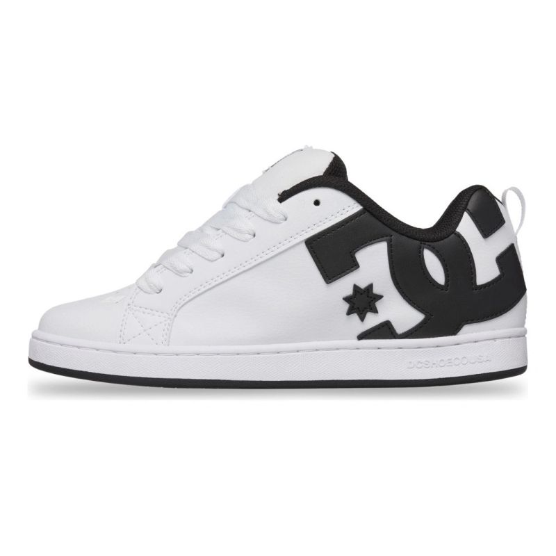 The DC Shoes Court Graffik DC01662114 White is a classic men's skateboarding-inspired sneaker combining comfort, durability, and a modern look. The upper, crafted from a combination of genuine leather, synthetic leather, and textile in a versatile white color, provides durability and an attractive design for both urban and casual styles. A padded tongue and collar enhance comfort, while traditional lacing ensures a secure fit.