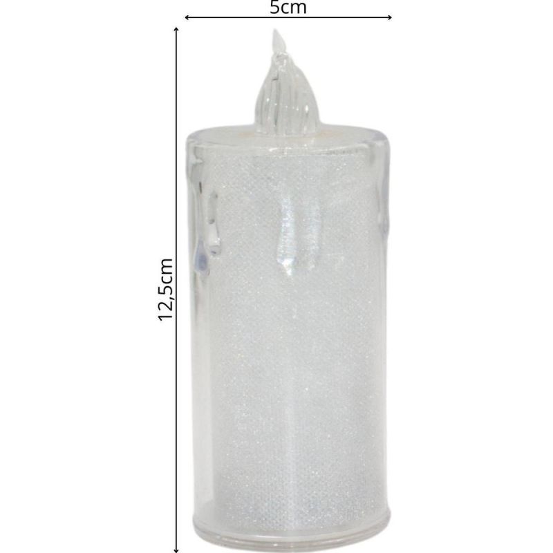 - A warm white LED in each candle creates a realistic flame effect.