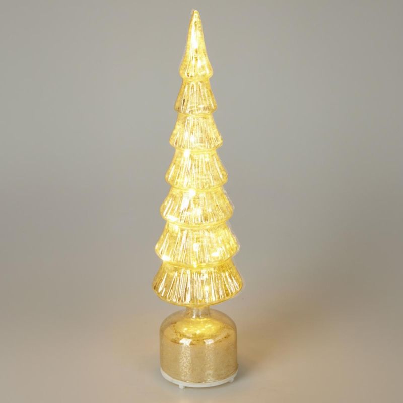 The 40 cm golden LED decorative Christmas tree is an elegant glass Christmas decoration that creates a warm, magical atmosphere and attracts the eye with its twinkling light.