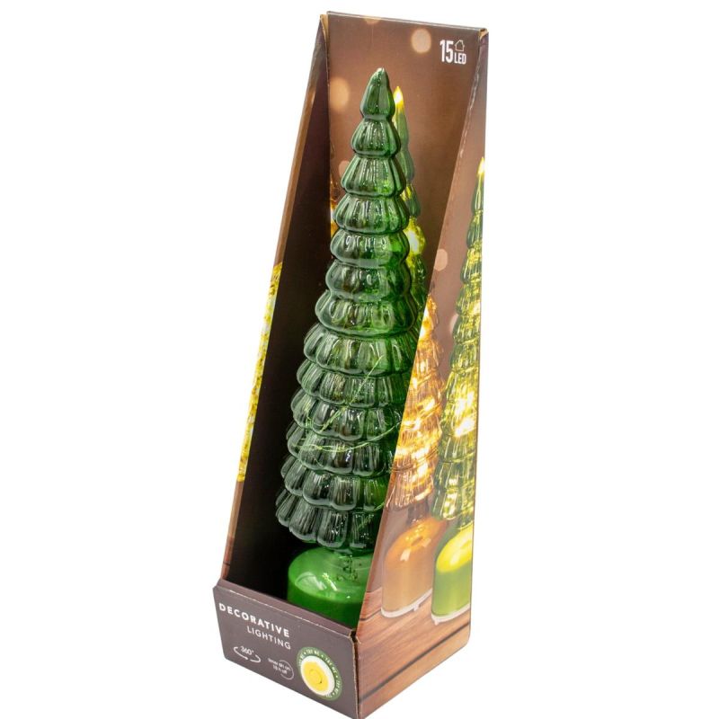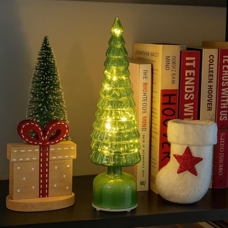 The 40 cm green LED decorative Christmas tree is an elegant glass Christmas decoration that creates a warm, magical atmosphere and attracts the eye with its twinkling light.