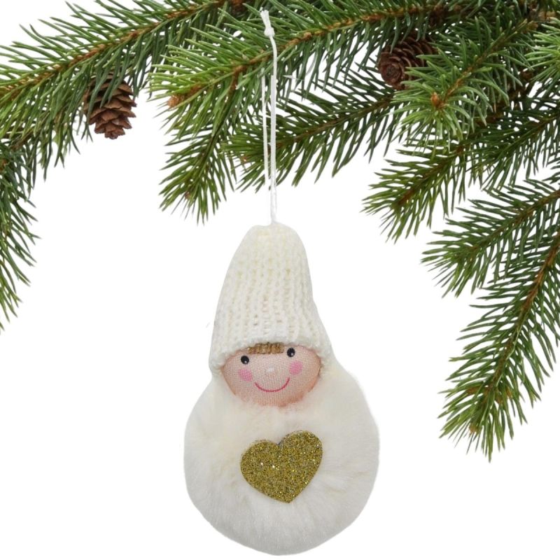 Looking for a holiday decoration that will brighten up your home during the holidays or winter? The 8cm Heart Decoration Doll in a Hat and Fur Coat, White, is perfect!