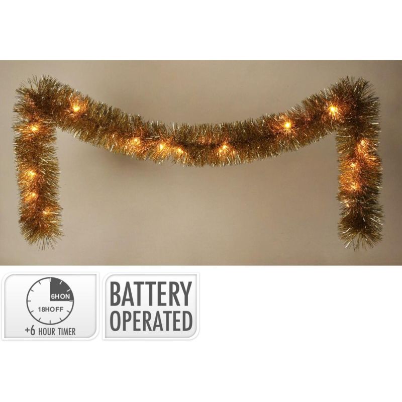 Add sparkle and elegance to your interior with this striking 270 cm gold garland featuring 26 LEDs. Its warm, subtle light makes it perfect for decorating your home, creating a unique ambiance during the holiday season. It's perfect for hanging on a fireplace mantel, stair railing, table, or window!