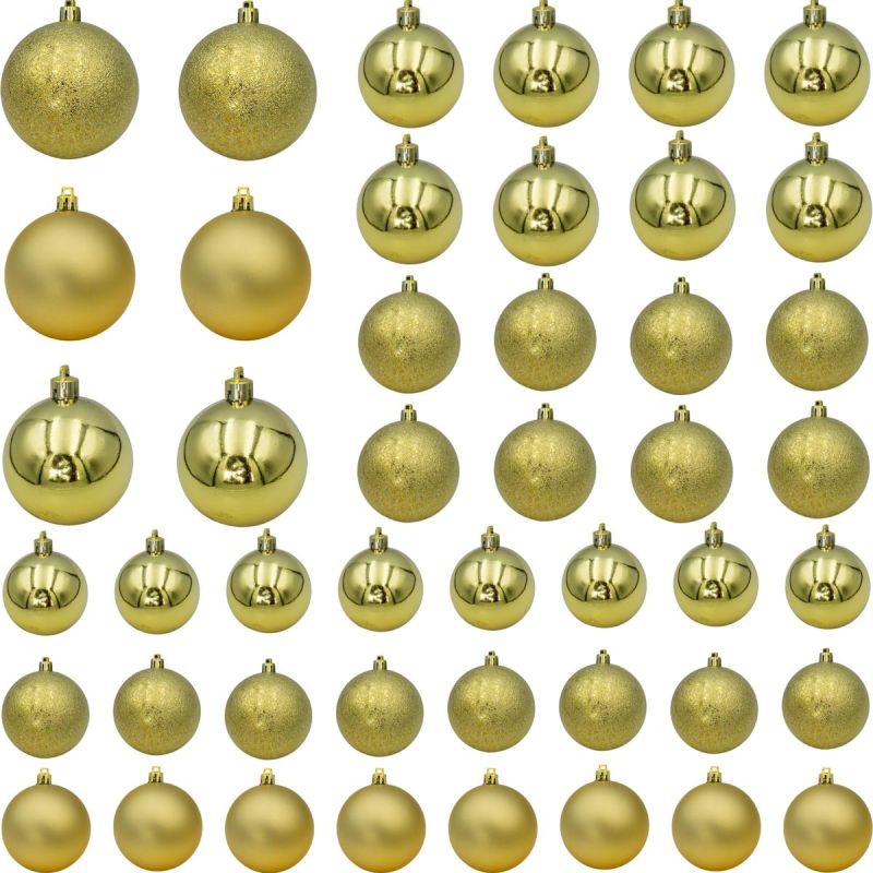 MICA Gold Bauble Set, 46 Pieces – Elegance, Safety, and Festive Sparkle All in One! Decorate your Christmas tree to catch the eye and bring the magic of the holidays to your home.