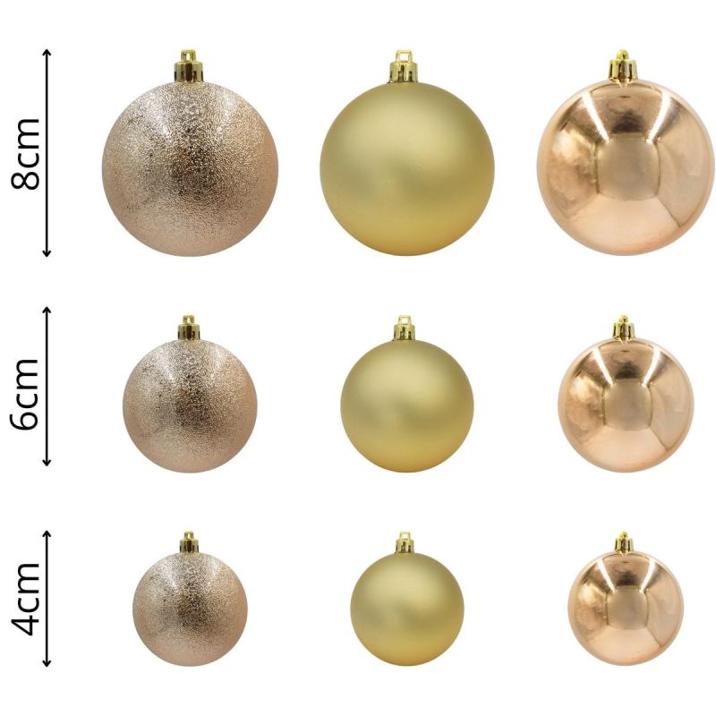 - The set includes: bauble with a diameter of 4cm - 24 pcs, with a diameter of 6cm - 16 pcs, with a diameter of 8cm - 6 pcs.