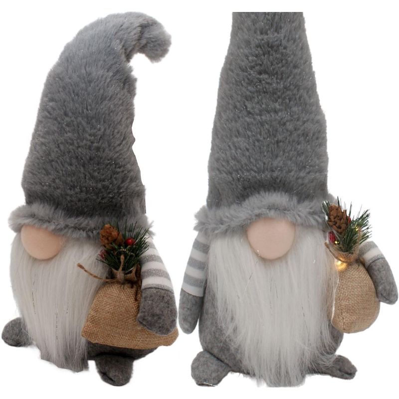 DECORATIVE PLUSH LED gnome 38CM GRAY