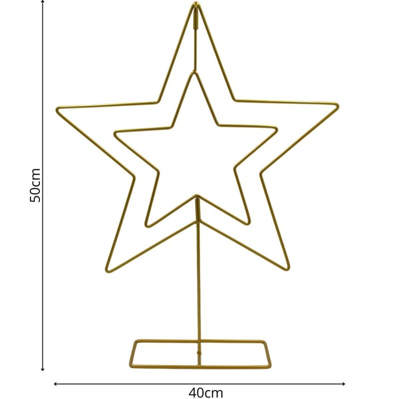 DECORATIVE STAR METAL STAND 50CM GOLD MICA