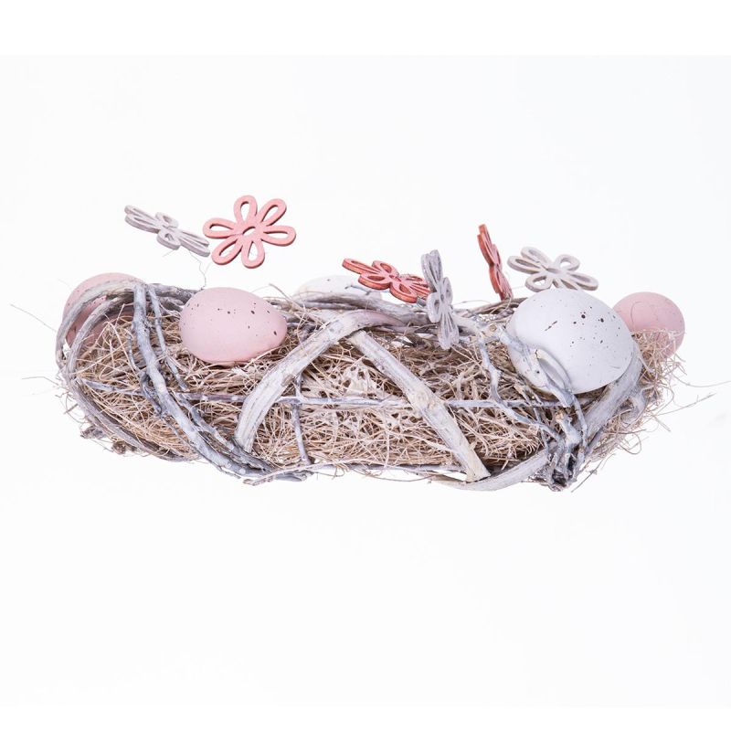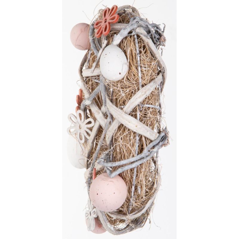 The GRAY DECORATIVE WREATH, DIAMETER 24 CM , is a charming Easter decoration. The wreath's pastel colors, white and pink wooden flowers, and natural-colored speckled eggs create a unique composition. The wreath will beautifully decorate your home, and its colors will highlight the white of the tablecloth, the charm of candles, or the shine of cutlery. The wreath can also be used to decorate your workspace. The GRAY DECORATIVE WREATH, DIAMETER 24 CM, was crafted with great care in fashionable pastel colors. The GRAY DECORATIVE WREATH, DIAMETER 24 CM, will look beautiful on your Easter table, on a door, on a mantelpiece, or in a window. It will look good in both modern and classic interiors. ITS DESIGN ALLOWS YOU TO ADD OTHER DECORATIONS The wreath is part of the SASKA EASTER Easter collection, where you're sure to find something else charming to decorate your home!