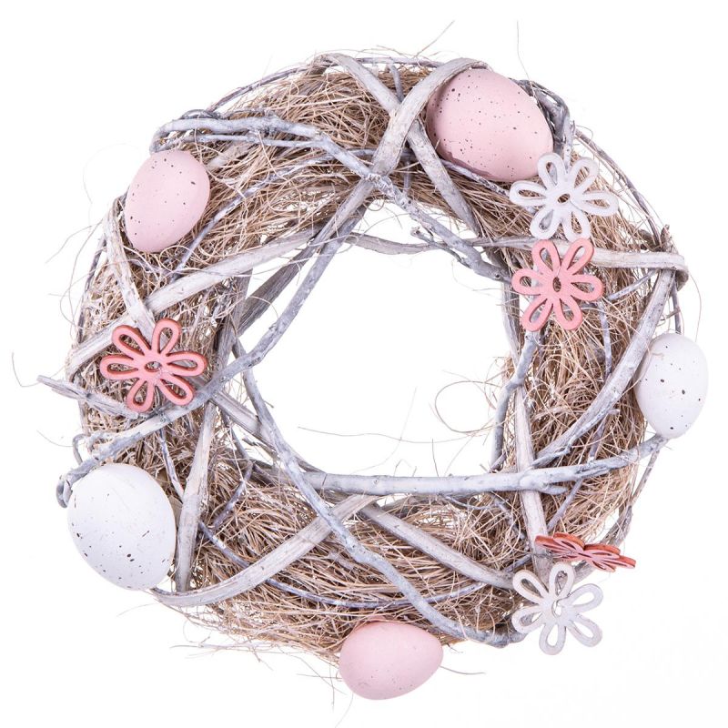 Want to decorate your home with beautiful and original decorations reminiscent of spring and Easter? This GREY DECORATIVE WREATH, DIAMETER 24 CM, will be the perfect addition for this occasion!