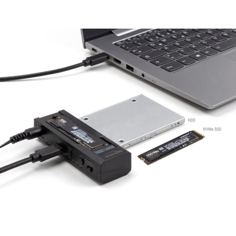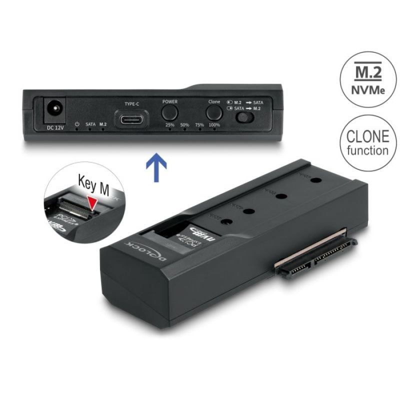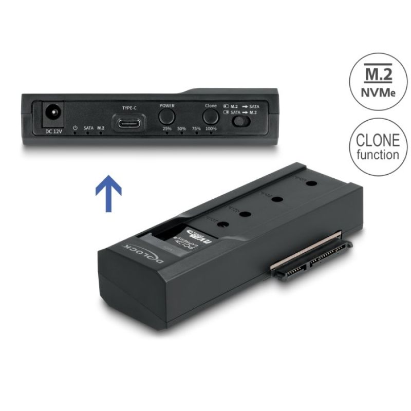 Delock - Memory Controller - Clone Function - 2.5", 3.5", M.2 (6.4 cm, 8.9 cm) - M.2 Card (PCIe NVMe and SATA) / SATA SSD - USB-C 3.2 (Gen 2x1)