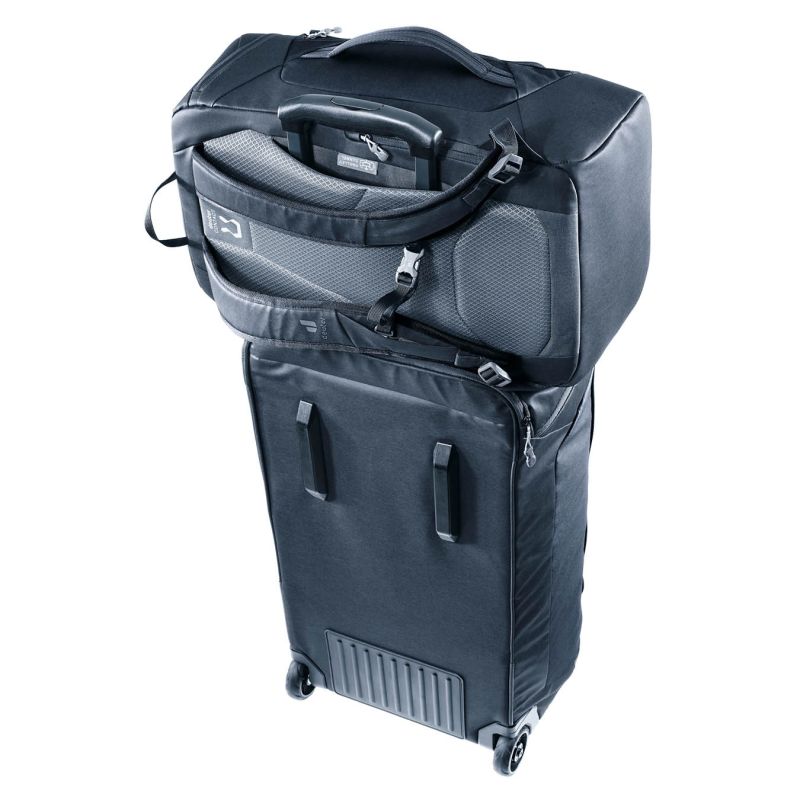 The Deuter Duffel Pro Pack 30 meets carry-on luggage requirements for most airlines, making it perfect for air travel. Its minimalist black design gives the bag a versatile, urban, and sporty feel. The product is PFC-free and bluesign-compliant, confirming responsible production.