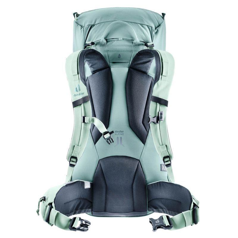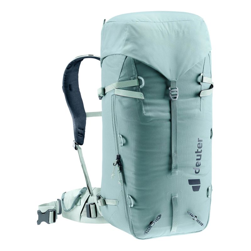 The Deuter Guide 32+8 SL Jade Frost is a professional mountaineering backpack designed specifically for women. The SL version offers a women's-specific fit thanks to a shorter carrying system and ergonomically contoured shoulder straps. Its 32-liter capacity, expandable by an additional 8 liters, makes it ideal for both day trips and multi-day expeditions. Made of durable, abrasion-resistant materials, the Alpine Back System ensures stability and comfort. It also features ice axe and trekking pole holders, a rope attachment, hydration system compatibility, and helmet compatibility. The Jade Frost color adds a modern, sporty touch.