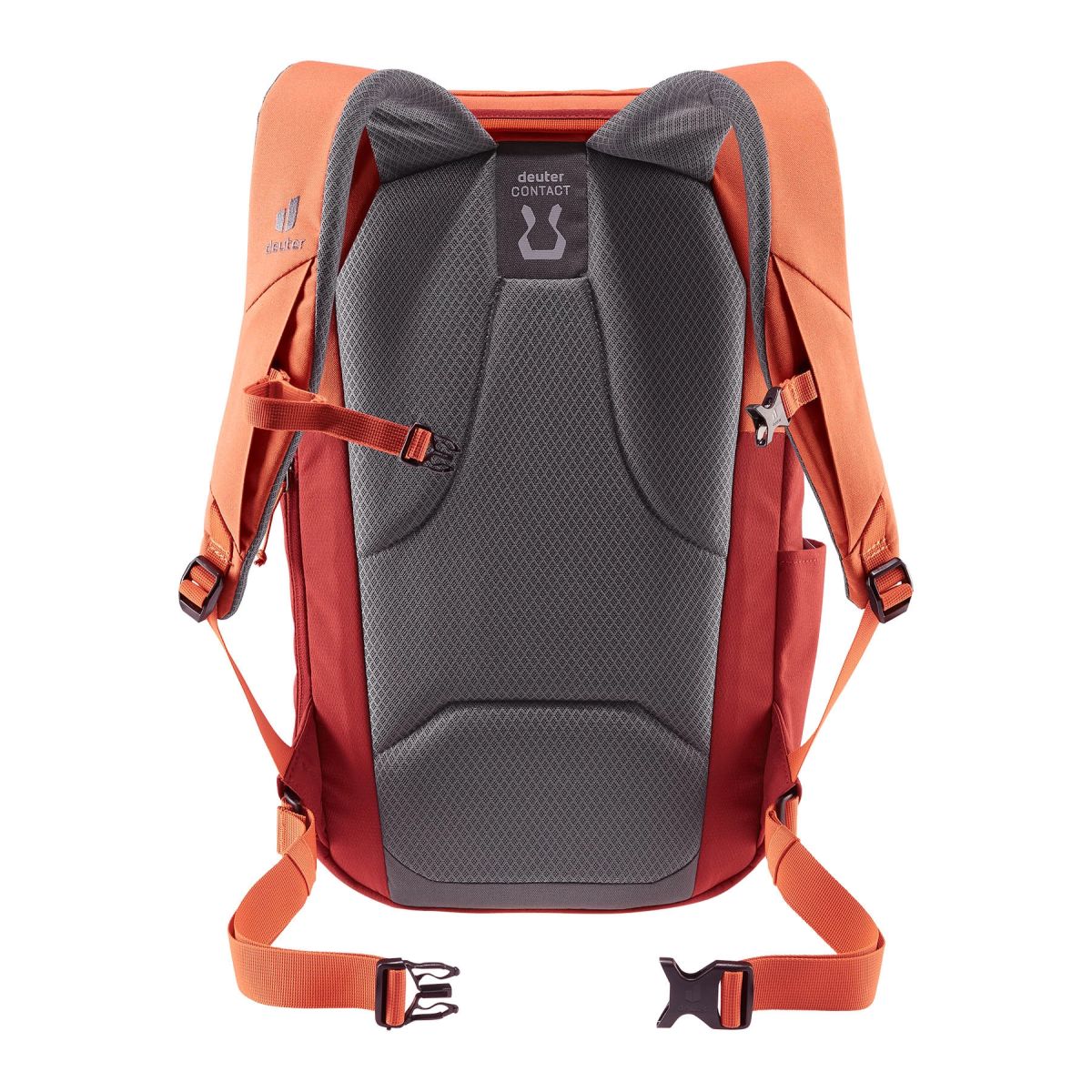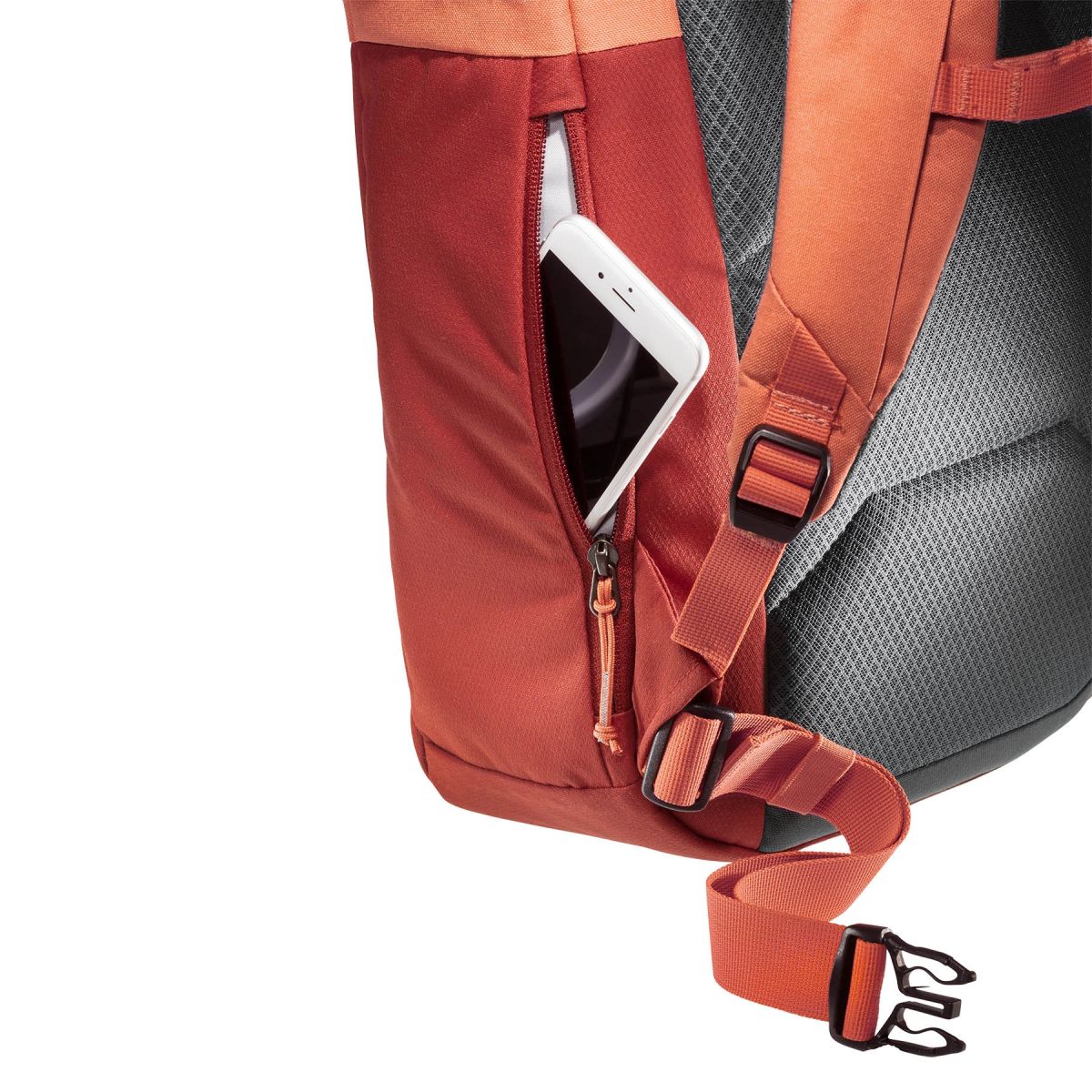 The Deuter UP Seoul Redwood Sienna is a modern backpack with a 16-liter capacity that can be expanded to 23 liters thanks to a practical expandable compartment. Designed for everyday use in the city, at university, at work, or while traveling, the backpack features a separate, padded compartment for a 15.6-inch laptop, an organizer for small items, and a water bottle pocket. Made from materials 100% recycled PET bottles, it is environmentally friendly and durable. Ergonomic shoulder straps, a reinforced back, and a lightweight construction ensure high carrying comfort.