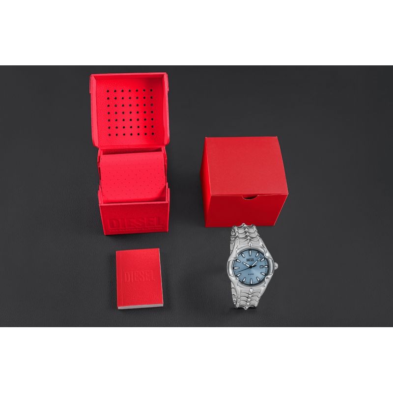 DIESEL is a brand that always impresses – from the watch itself to every piece of the set. You'll receive it in an original, branded DIESEL box – sturdy and stylish, perfectly in keeping with the brand's image. It's more than just packaging – it's a preview of what awaits inside. Perfectly matched to the watch, it highlights its unique character and makes it a ready-made, prestigious gift.
