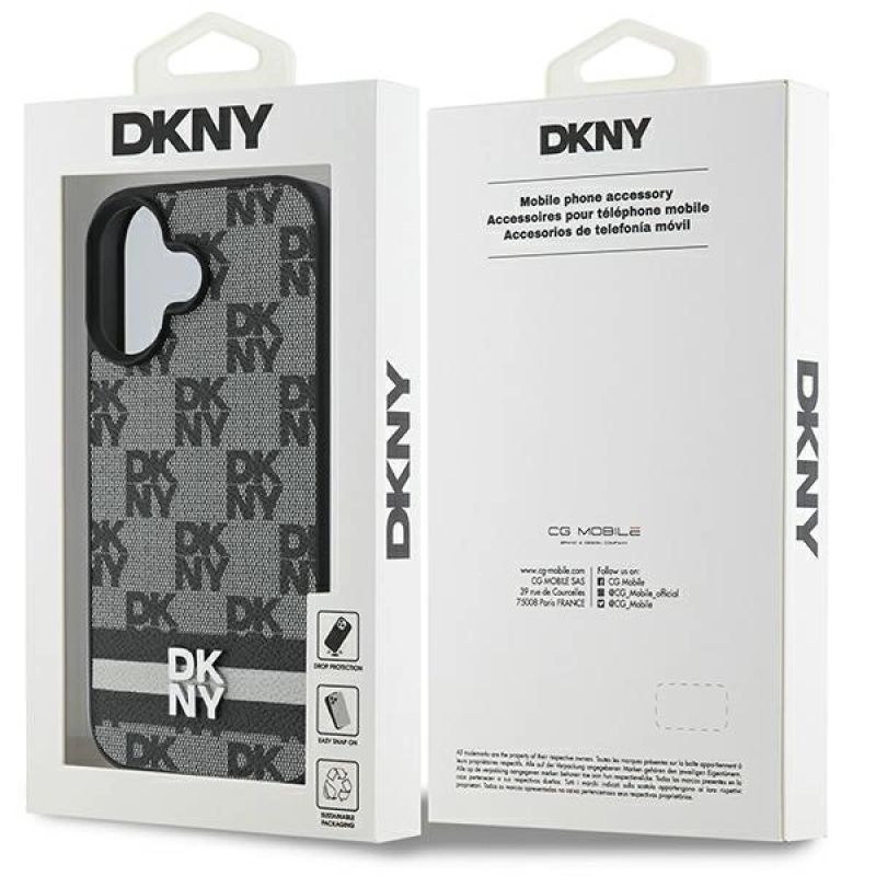 DKNY Checkered Pattern & Printed Stripes iPhone 16 Case - Black