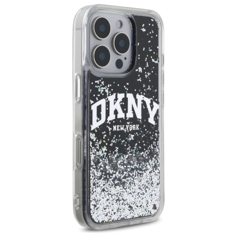 DKNY DKHCP16LLBNAEK iPhone 16 Pro 6.3" black/black hardcase Liquid Glitter Arch Logo