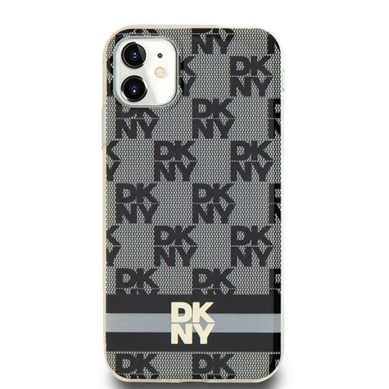 DKNY IML Checkered Mono Pattern & Printed Stripes MagSafe Case for iPhone 11 / Xr - Black