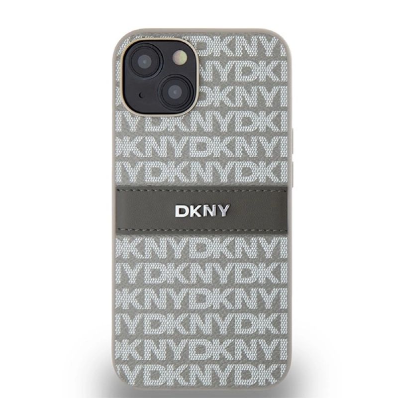 DKNY Leather Mono Stripe & Metal Logo case for iPhone 15 / 14 / 13 - beige