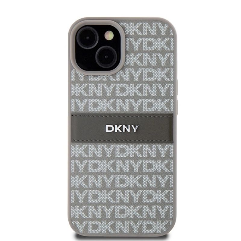 DKNY Leather Mono Stripe & Metal Logo case for iPhone 15 / 14 / 13 - beige