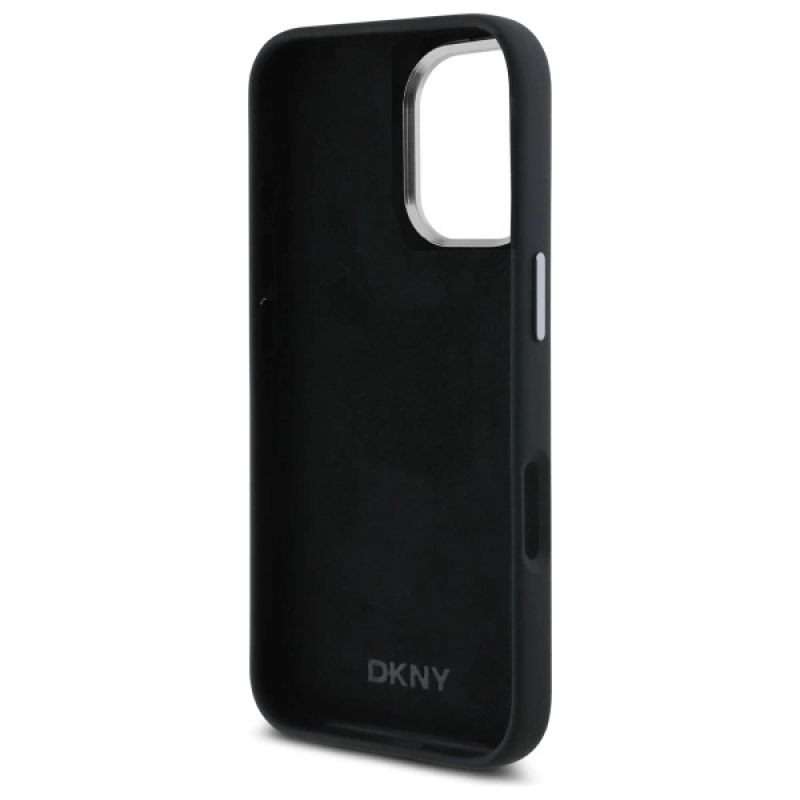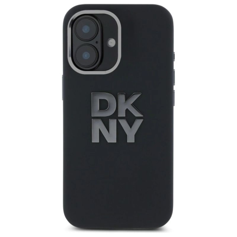 DKNY Liquid Silicone Metal Logo iPhone 16 Case - Black
