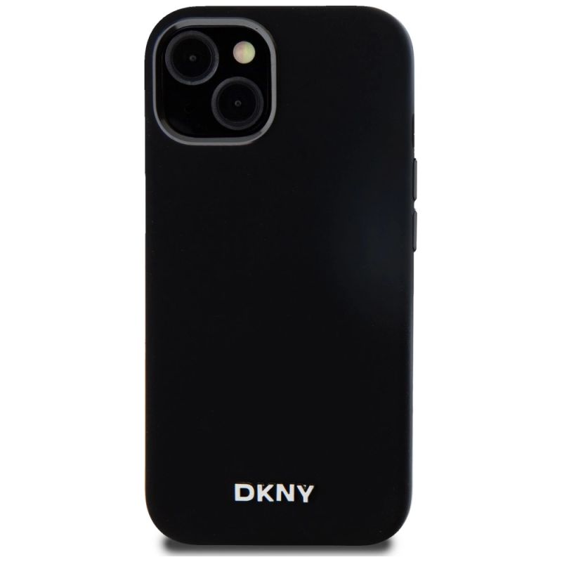 DKNY Liquid Silicone Small Metal Logo MagSafe Case for iPhone 14/15/13 - Black